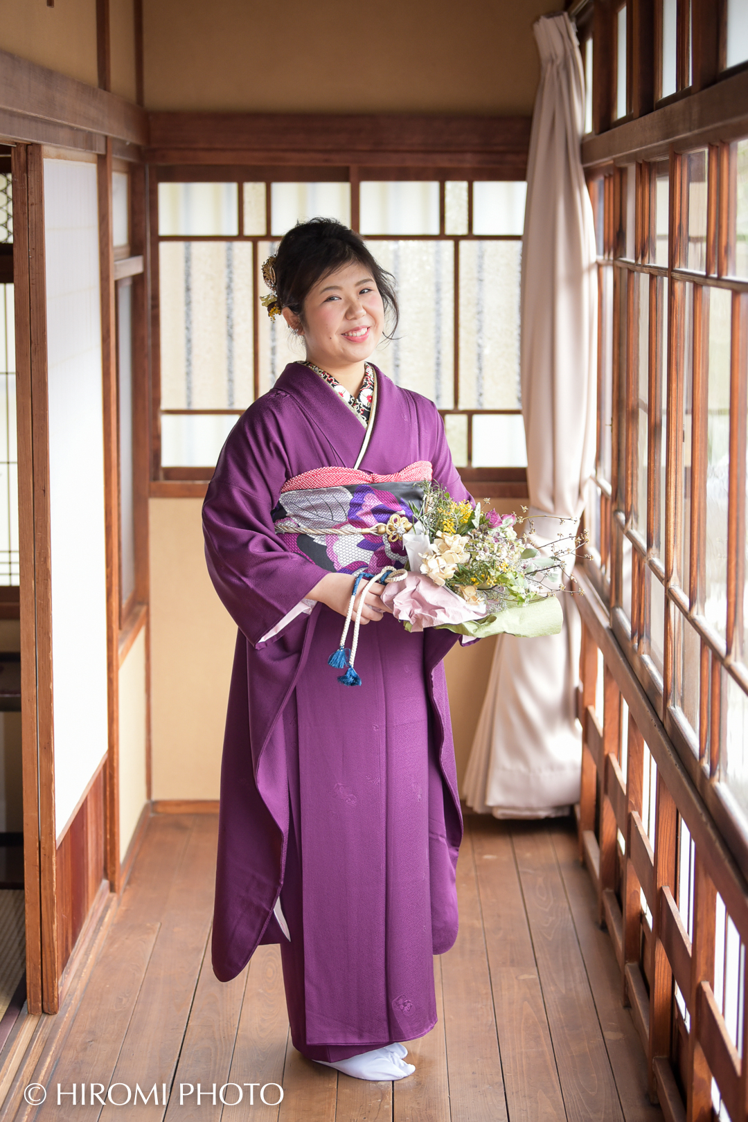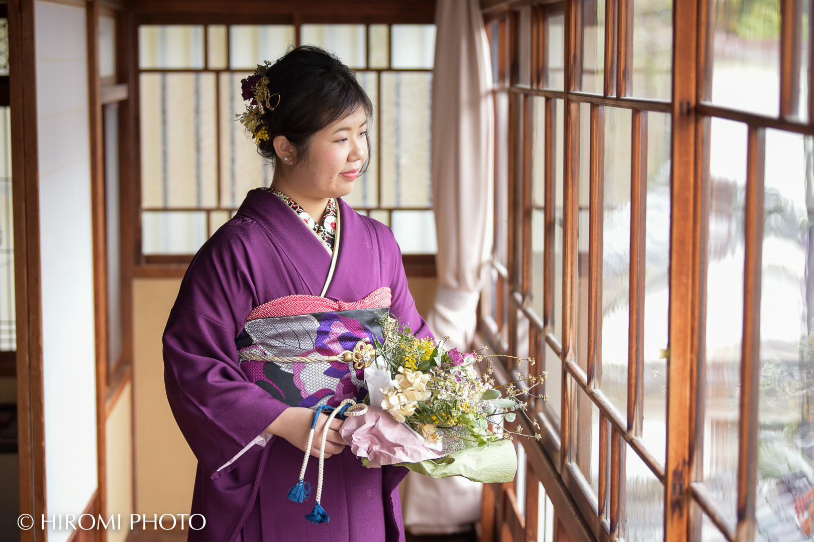 歴史ある建物の静謐な空気感と、お嬢様の凛とした表情。 晴れの日とはまた違う、しっとりと落ち着いた、美しいお写真を残すことができました。
