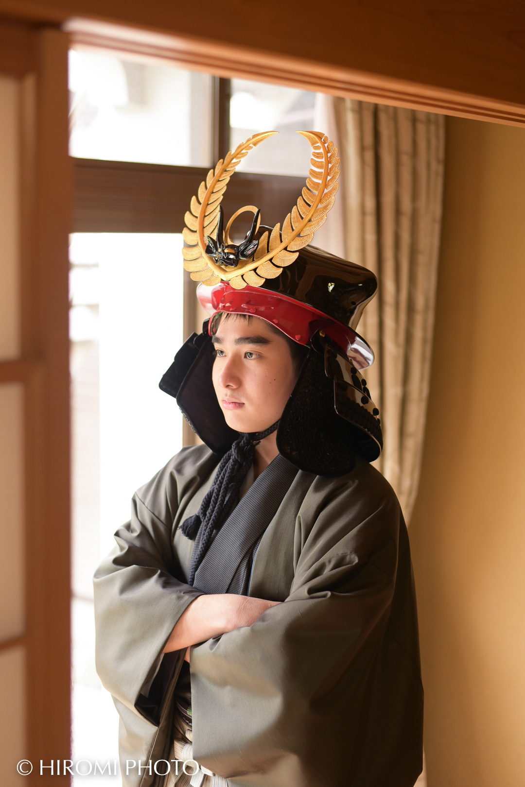 「端午の節句の時の立派な兜があるので、それを着けて撮影してみたい」と出してきてくれました![]()
