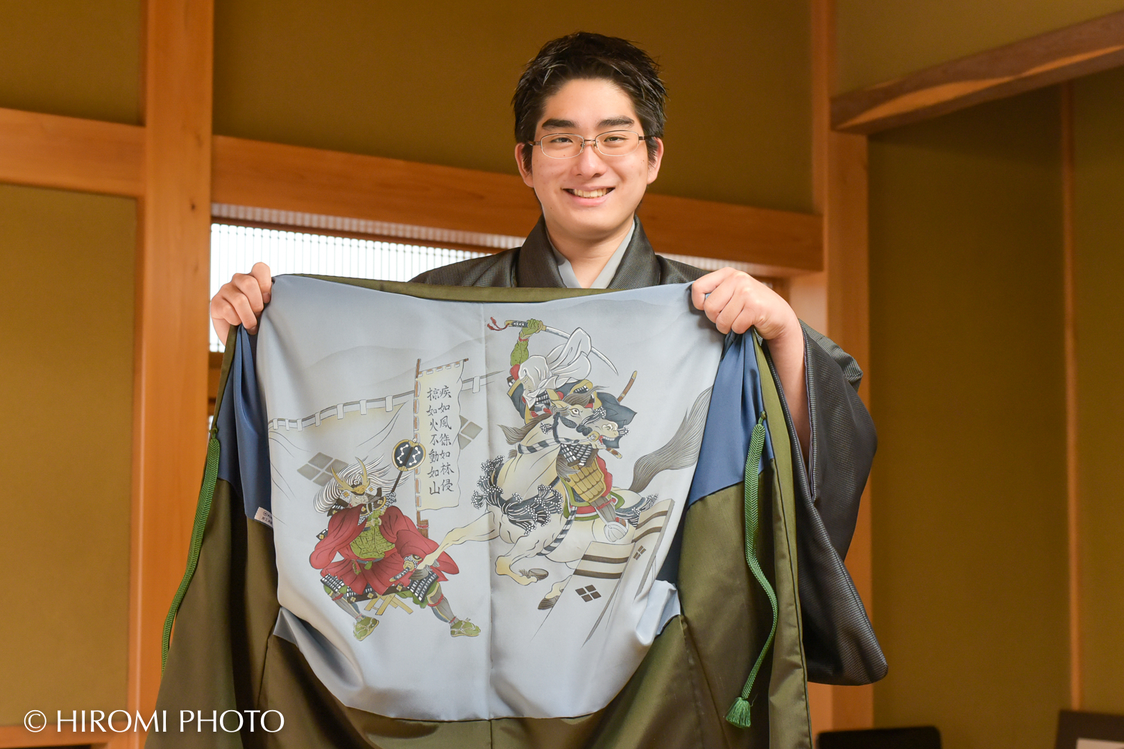 お召しになっているお着物は和裁士のお母様が仕立てられたもので、羽織の裏側もカッコよくて胸が躍りました❣️