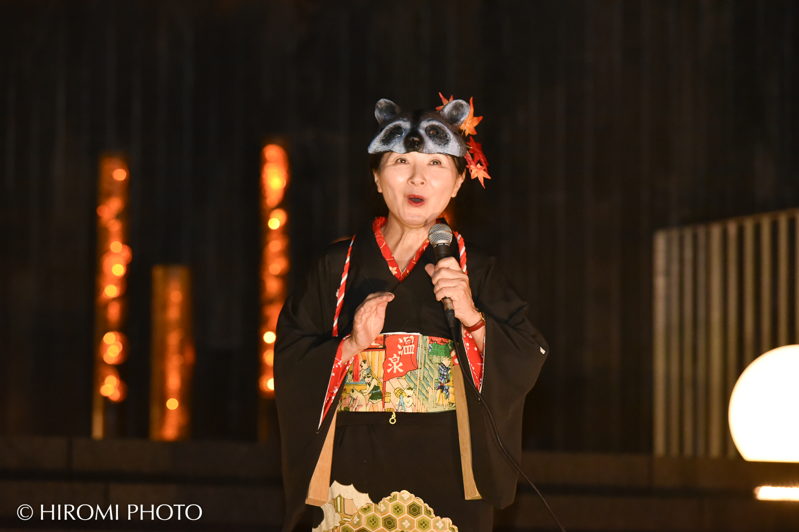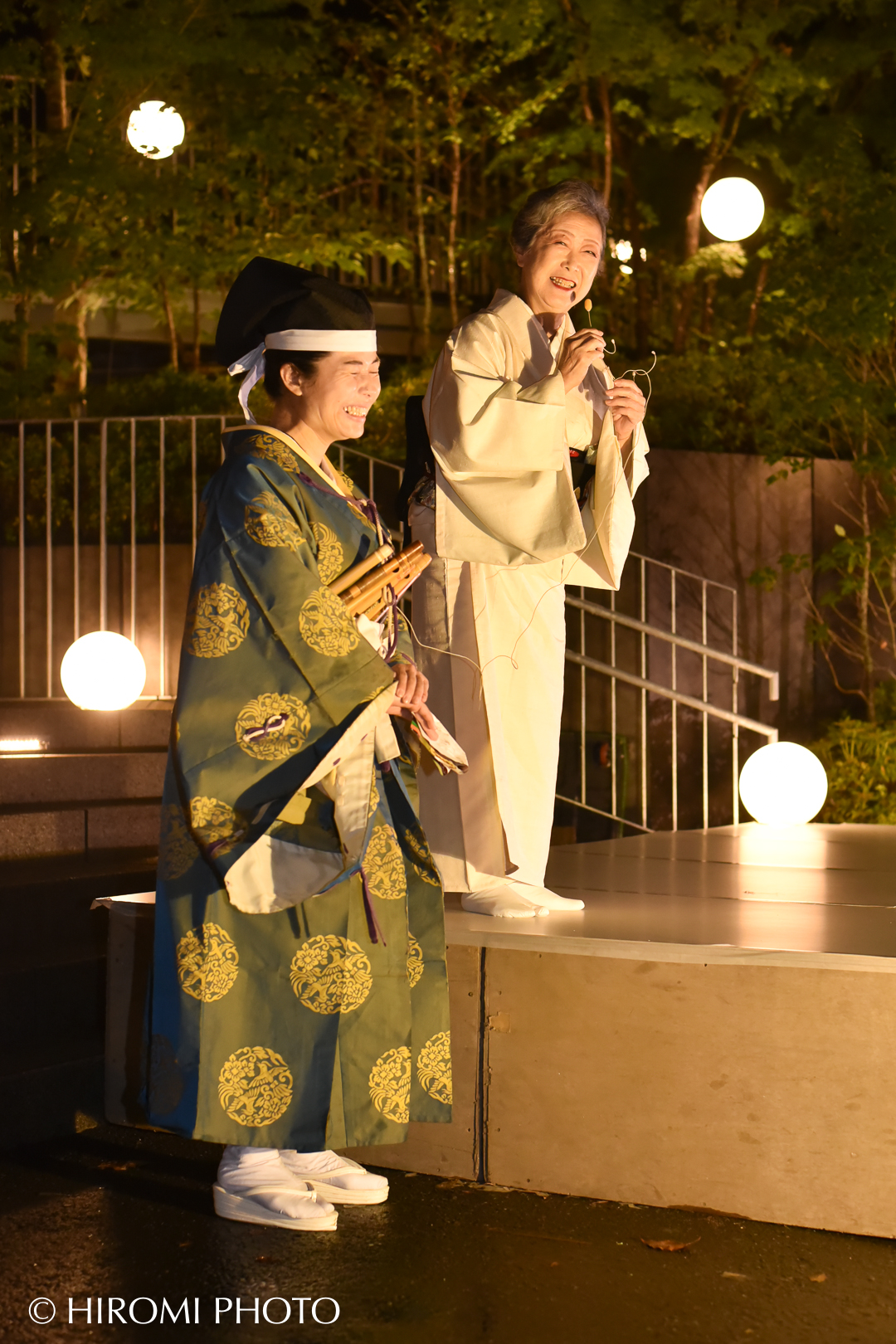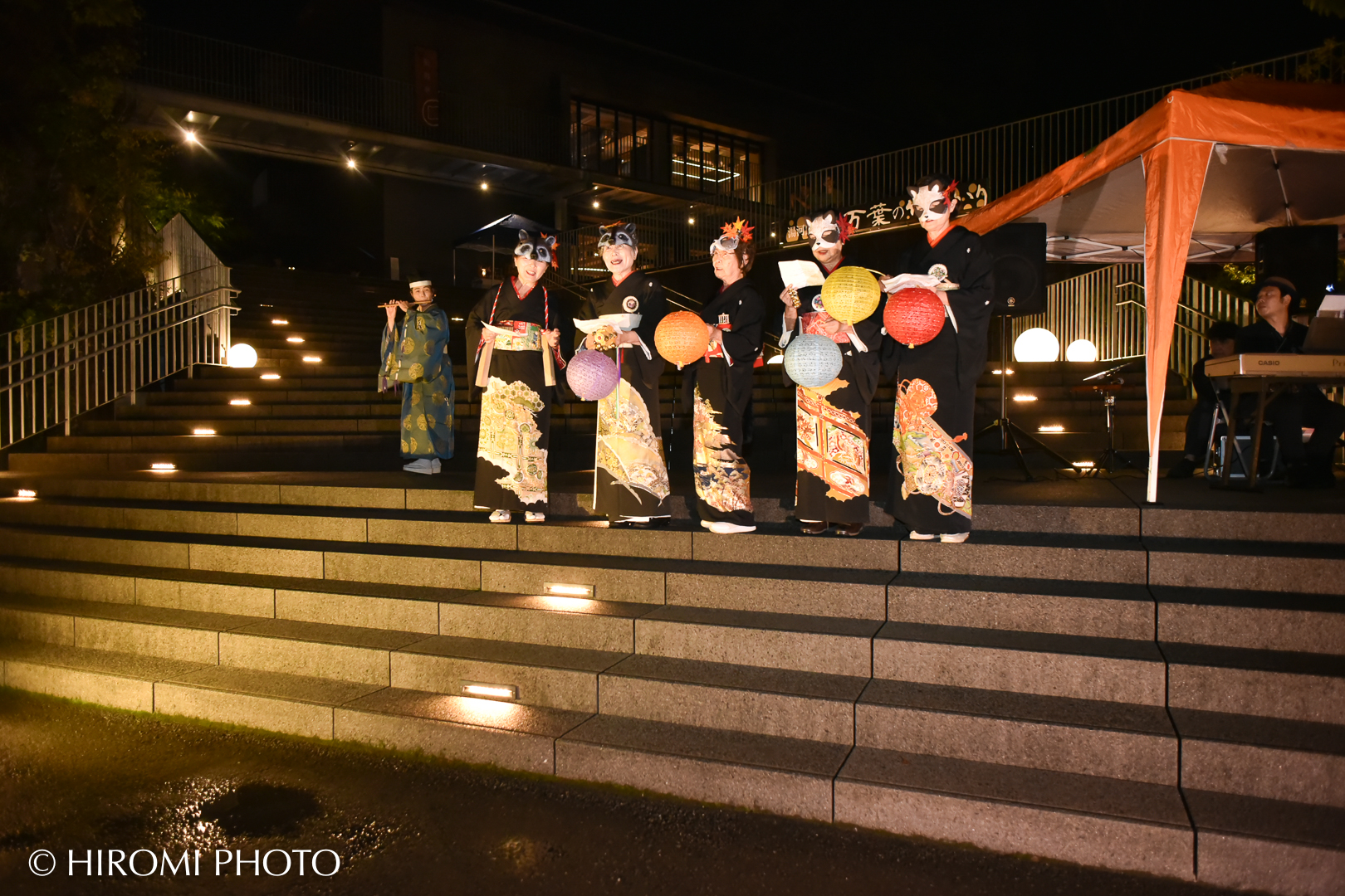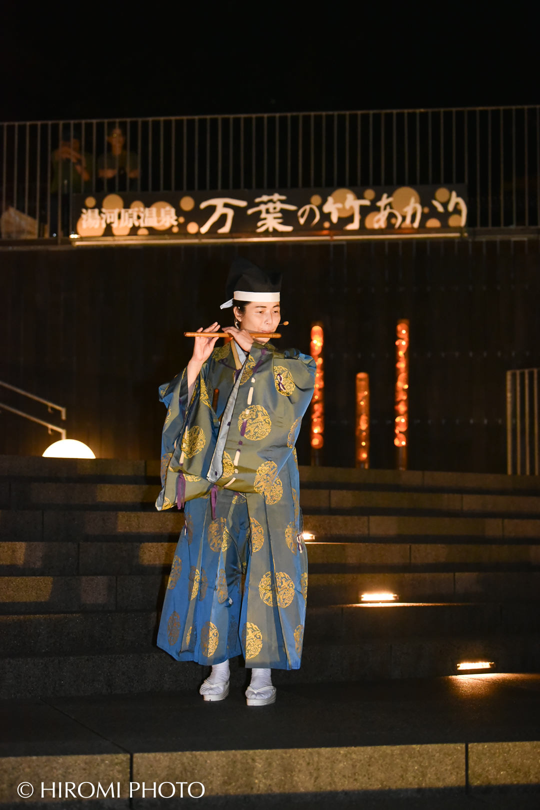 19時からは惣湯テラス前にて、狸の行列の皆さんと共に、竹笛とピアノの演奏などが行われました。