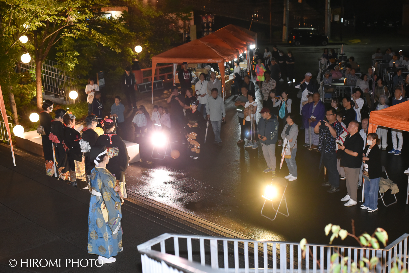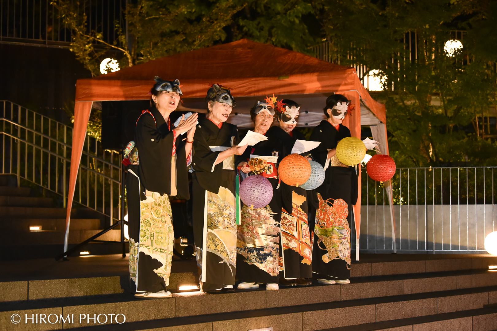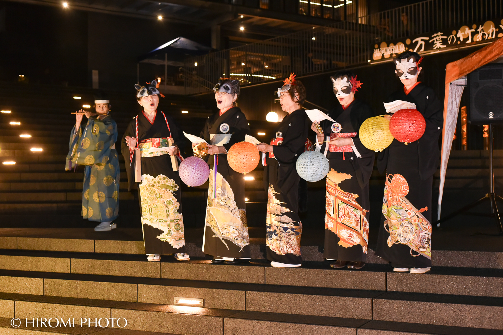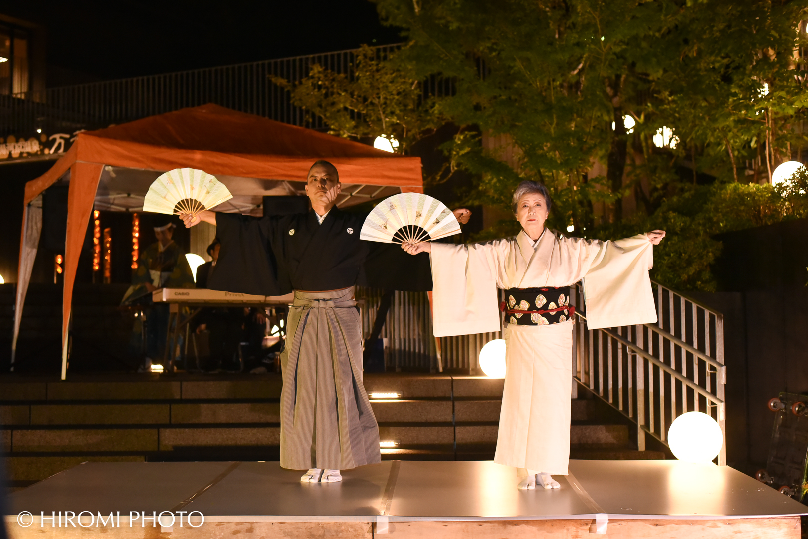 19時からは惣湯テラス前にて、狸の行列の皆さんと共に、竹笛とピアノの演奏などが行われました。