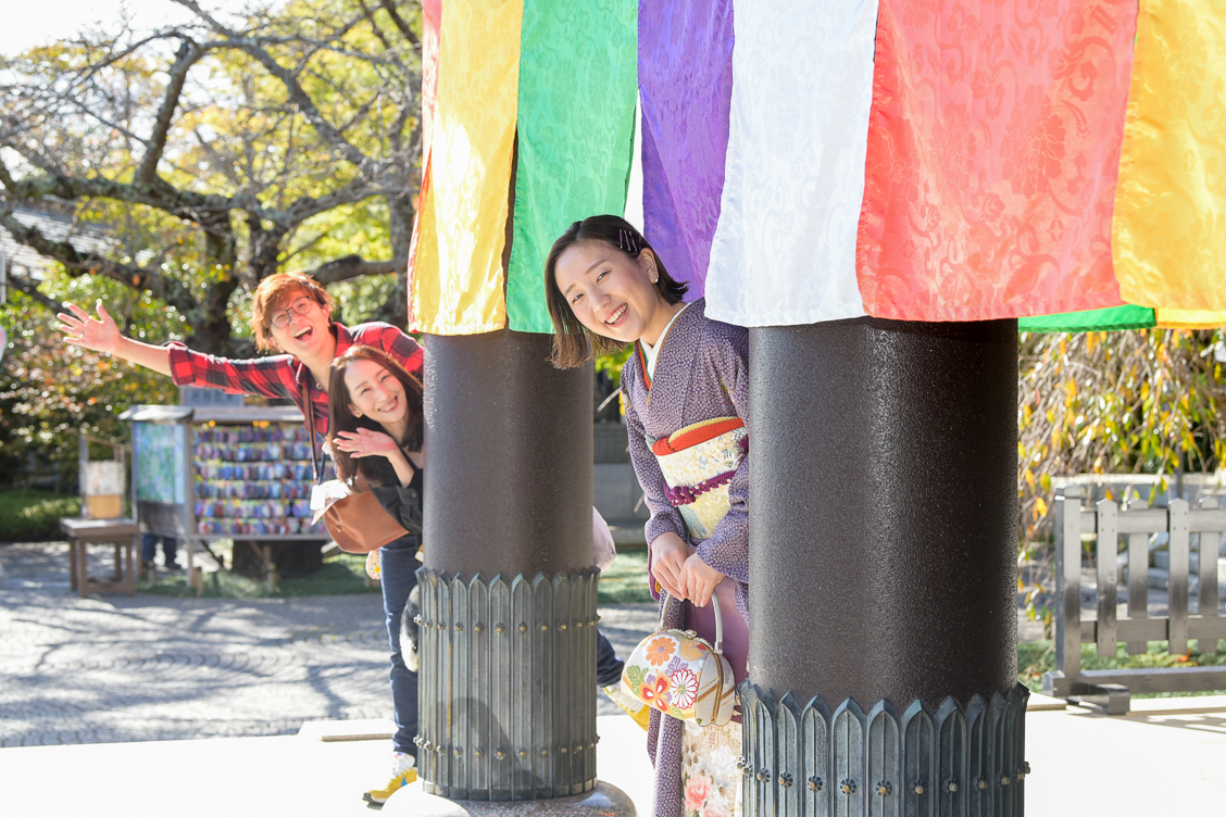 お客様の美しい着姿とスムーズな撮影のため、原則として熟練の着付け師が同行し、移動やポージングなどをサポートいたします。