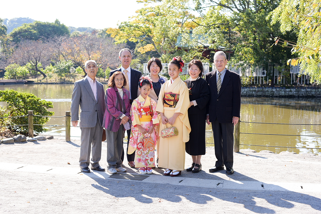 お支度から、神社へのご参拝、家族写真まで、ご家族皆様と共に、特別な一日となるよう心を込めてお手伝いさせていただきます。